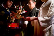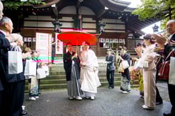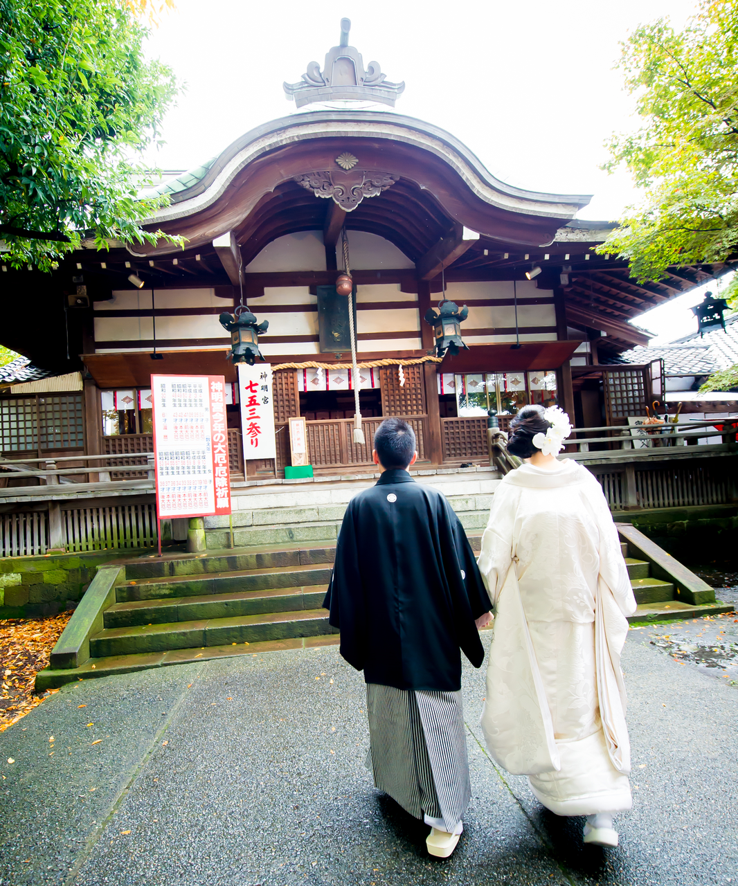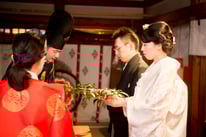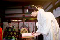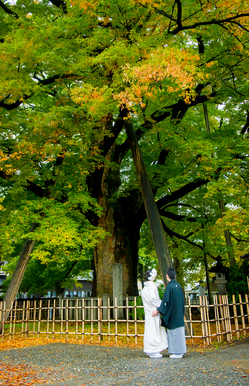 緑豊かな木々の中、厳かな空気が漂う神聖な空間で日本の古き良き伝統を感じられる結婚式